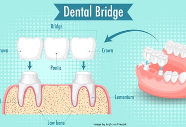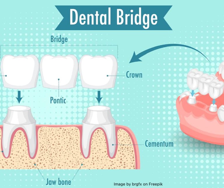 Crowns and bridges are custom-made restorations that can restore the shape, size, and appearance of damaged or missing teeth. Our dental crowns are made from high-quality materials to provide a natural-looking solution for long-lasting dental repairs.